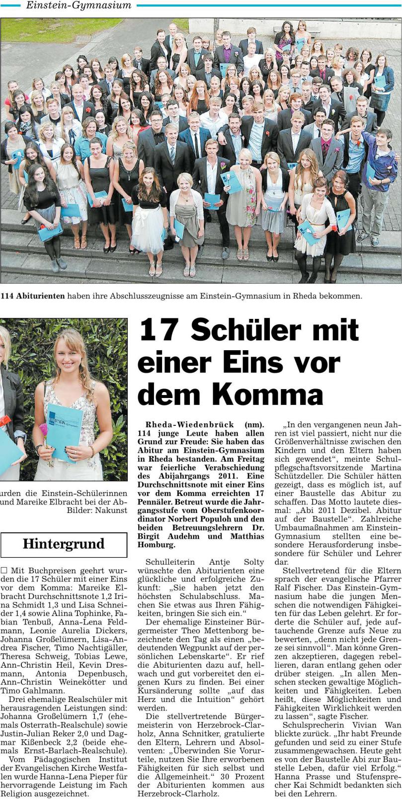 Diese Chronik zeigt eindrucksvoll die Entwicklungsschritte unseres Gymnasiums von der Gründung im Jahre 1969 bis heute. Geprägt durch meine Vorgänger im Amt, Herrn Krul, Herrn Müller und Frau Solty, durch die vielen Lehrerinnen und Lehrer, die Eltern, Freunde und Förderer und ganz besonders durch die Generationen von Schülerinnen und Schülern, bildet das pädagogische Credo eines schülerzentrierten und handlungsorientierten Vorgehens, welches den Fokus auf Stärken und besondere Begabungen der Schülerinnen und Schüler, auf den umsichtigen, partnerschaftlichen und individuellen Austausch mit Schülern und Eltern, die Kooperation mit Partnern aus Gesellschaft, Wirtschaft und Wissenschaft – vor Ort, in der Region, in Europa und in der Welt, seit einem halben Jahrhundert die Antriebsfeder für stetige Entwicklung. Die Freude und Leichtigkeit beim gemeinsamen Tun und letztlich die erfolgreichen Ergebnisse harter Arbeit finden sich in den vielen Episoden dieses Rückblicks auf die vergangenen 50 Jahre und sind gleichzeitig Ausdruck eines andauernden kontinuierlichen Prozesses, welcher auf die aktive Gestaltung einer lebens- und liebenswerten Zukunft durch umfassend gebildete Einsteiner und Einsteinerinnen hinzielt. Durch die vielen Kinder, die jedes Jahr mit Stolz und großer Vorfreude neu zur Familie der Einsteiner stoßen ist diese Entwicklung – ebenso wie diese Chronik – nie abgeschlossen, so dass wir schon gespannt die zukünftigen Kapitel erwarten.