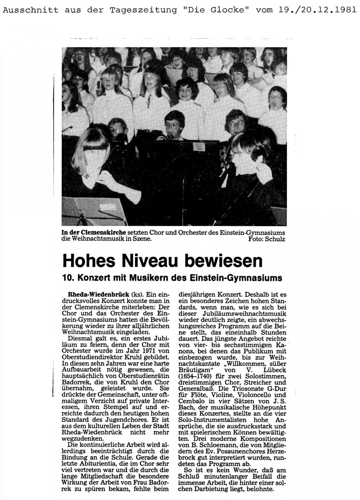 11. Dezember 1981 – Zum zehnten Mal Weihnachtsmusik