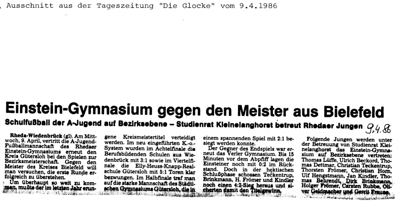 Fehlt hier ein wichtiges Event? Haben wir einen Fehler gemacht? Haben Sie einen interessanten Artikel oder ein Foto, das gut in unsere Chronik passen würde? Kontaktieren Sie uns unter uhlmann@eg-rheda.de!